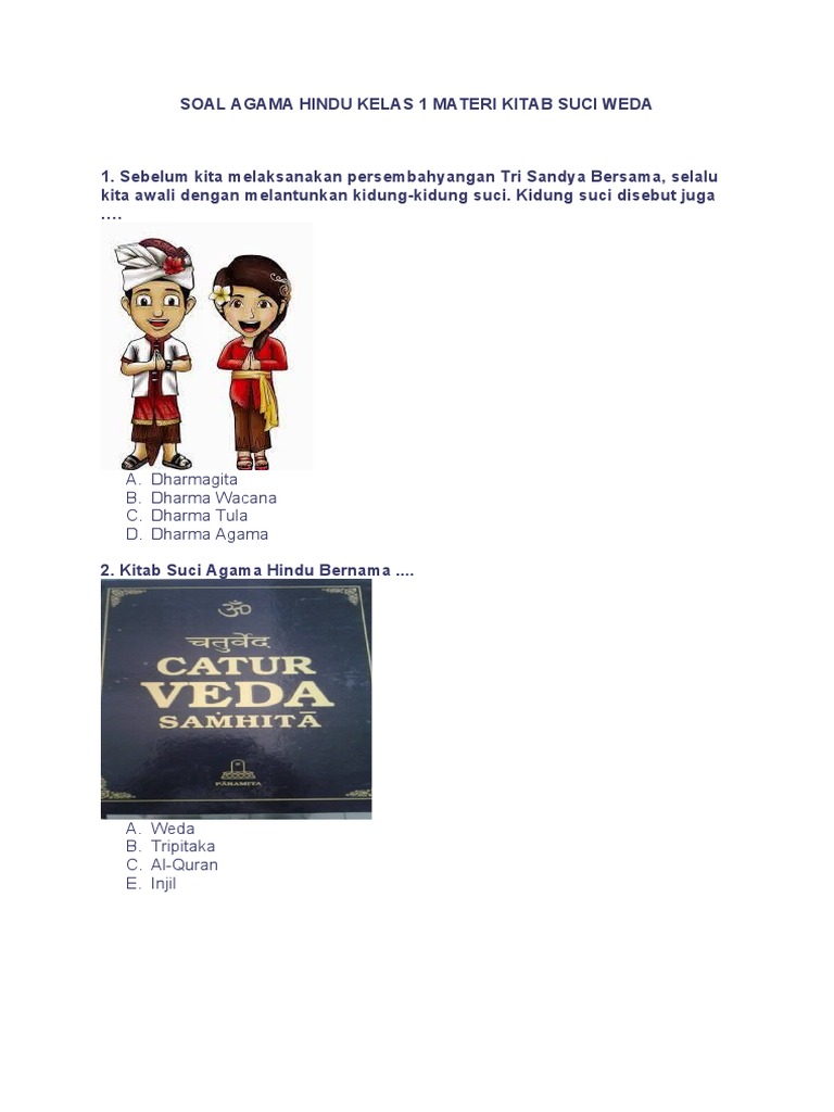 Contoh Soal Agama Hindu Kelas 1 Semester 2: Panduan Belajar dan Pembahasan