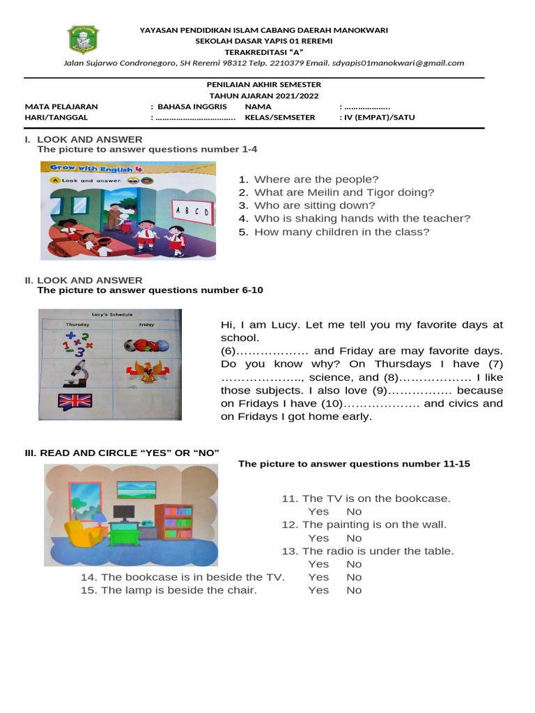 Penilaian Akhir Semester (PAS) merupakan salah satu tolok ukur penting untuk mengevaluasi pemahaman siswa terhadap materi pelajaran selama satu semester. Bagi siswa Kelas 4 Sekolah Dasar, PAS Bahasa Inggris memegang peranan krusial dalam mengukur kemampuan mereka dalam berbahasa Inggris, mulai dari kosakata, tata bahasa, hingga pemahaman bacaan dan mendengarkan. Mempersiapkan diri dengan baik untuk PAS adalah kunci kesuksesan. Salah satu cara efektif untuk melakukannya adalah dengan berlatih menggunakan contoh soal-soal PAS. Artikel ini akan menjadi panduan lengkap bagi Anda, baik siswa, orang tua, maupun guru, untuk menemukan dan mengunduh soal PAS Bahasa Inggris Kelas 4 dalam format PDF, serta tips memaksimalkan penggunaannya.