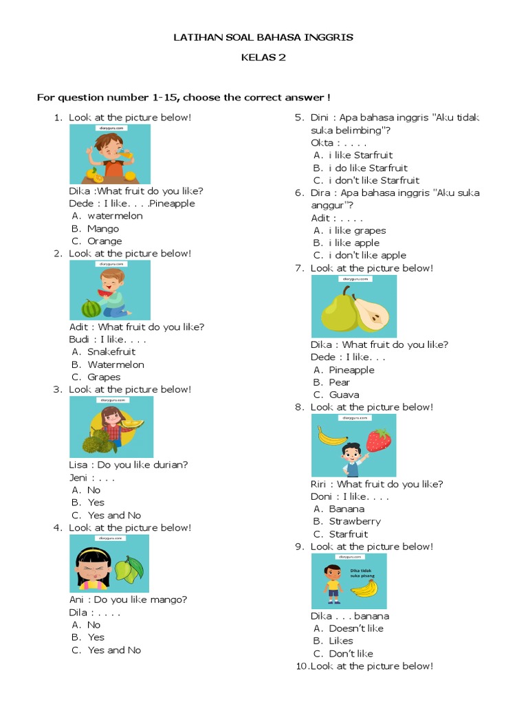 - Mengukur Pemahaman Konsep: Mengetahui apakah siswa telah menguasai kosakata, frasa, dan struktur kalimat dasar yang diajarkan.