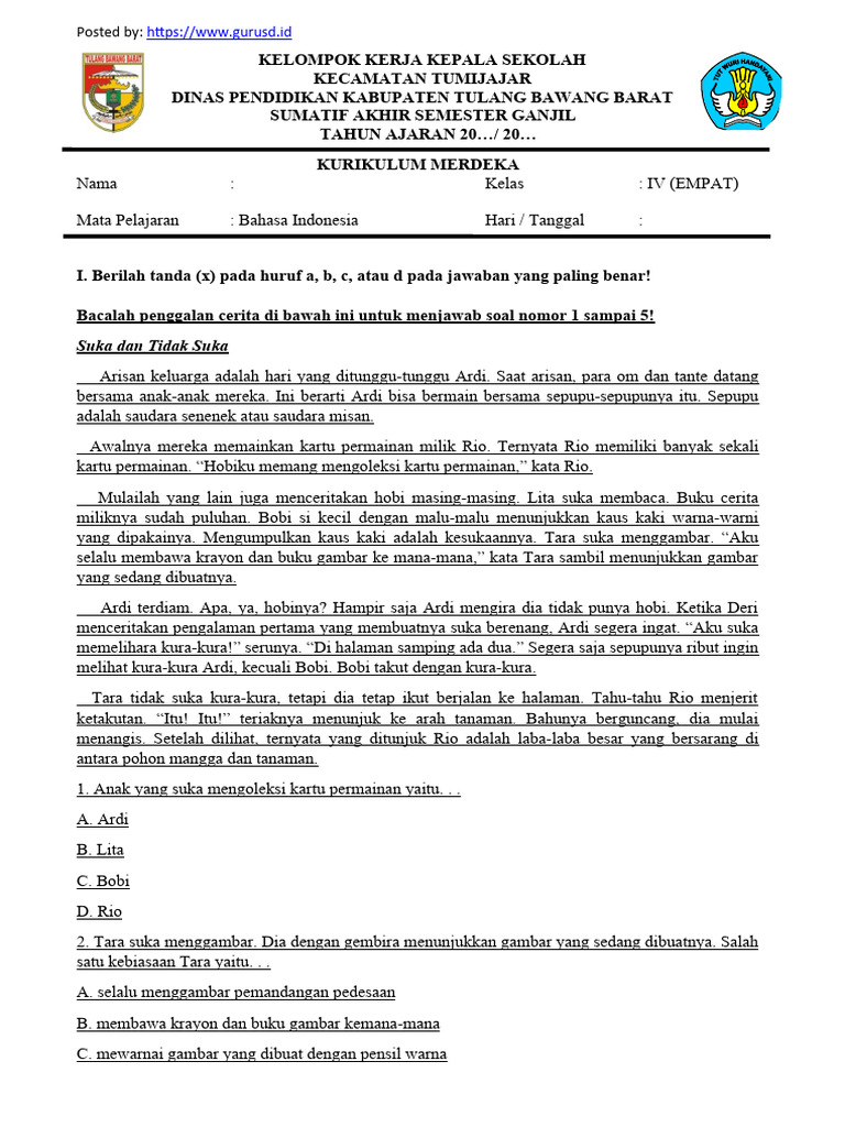 Di Mana Menemukan Soal PAS Bahasa Indonesia Kelas 4 Semester 1?